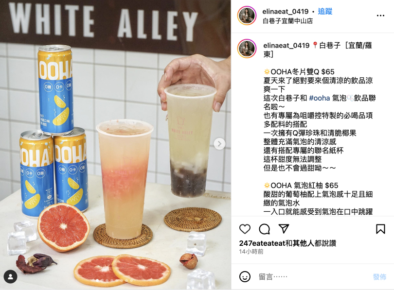 部落客分享|Elina 的警報讚美食:「酸甜的葡萄柚配上氣泡感十足且細緻的氣泡水 一入口就能感受到氣泡在口中跳躍」