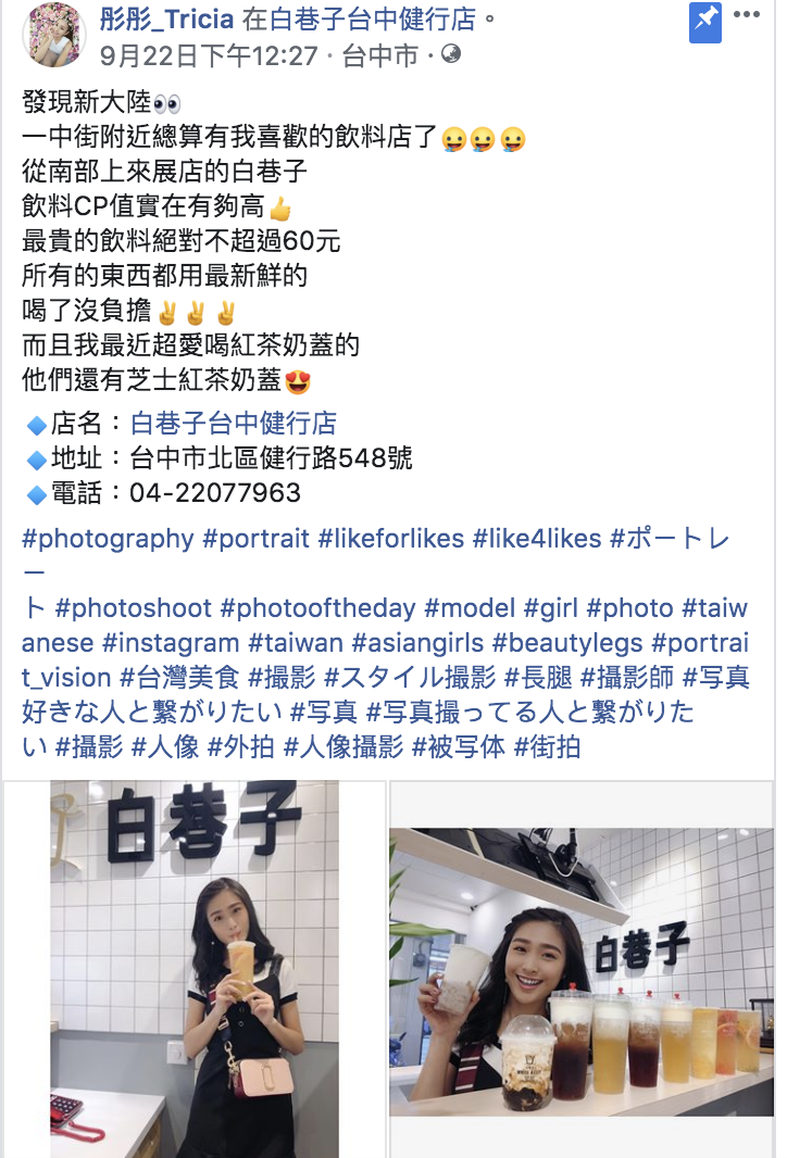感謝模特兒【彤彤_Tricia】到訪 ,一中附近總算有我喜歡的飲料店了!!
